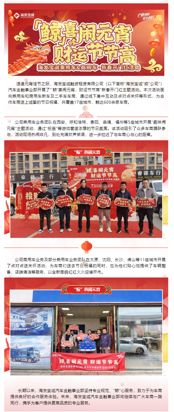 “鯨”喜鬧元宵,財運節(jié)節(jié)高——海發(fā)寶誠汽車金融事業(yè)部開展新春開門紅主題活動